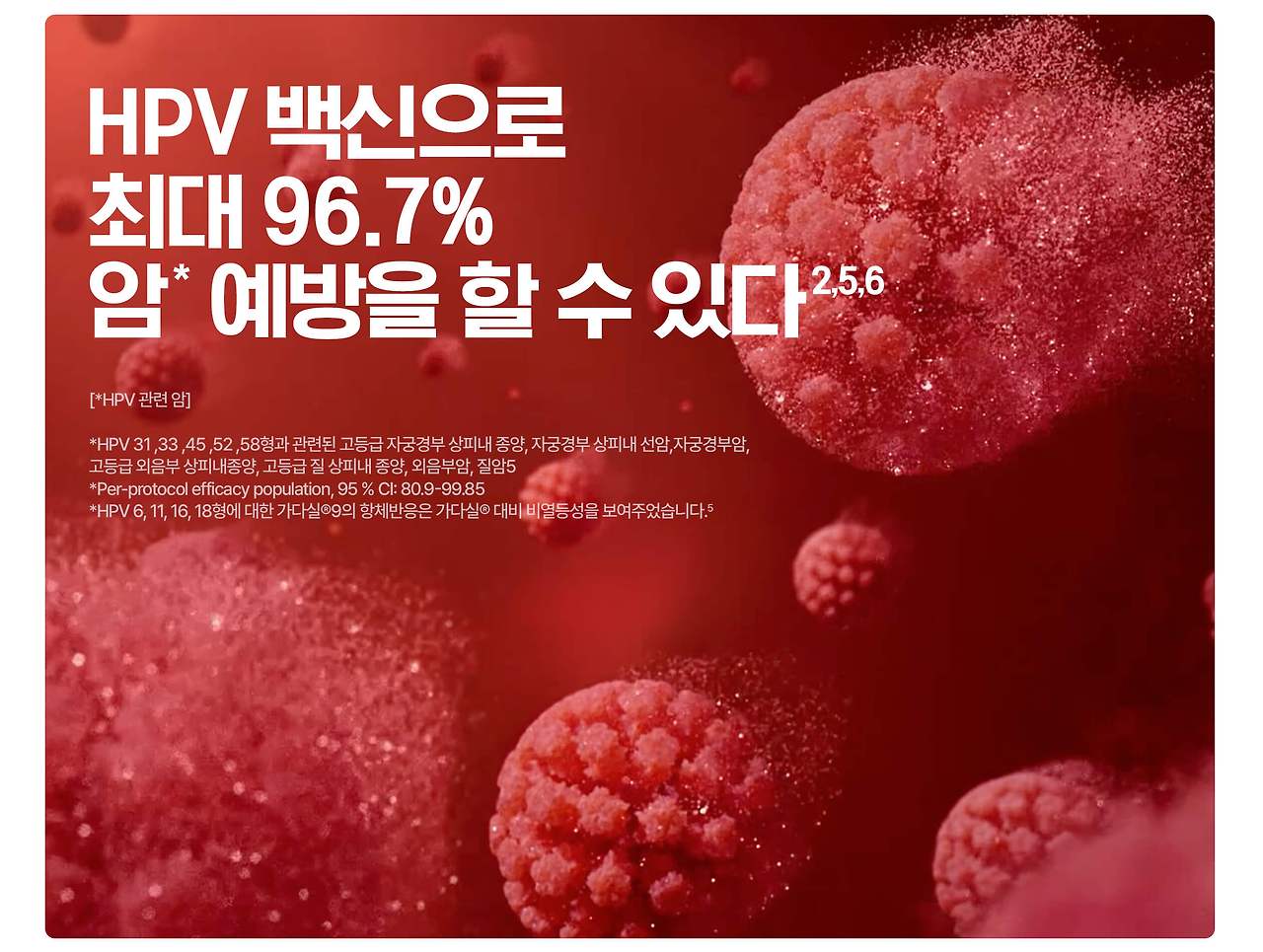 가다실9의 가장 큰 장점은 최대 96.7%의 암 예방 효과입니다.